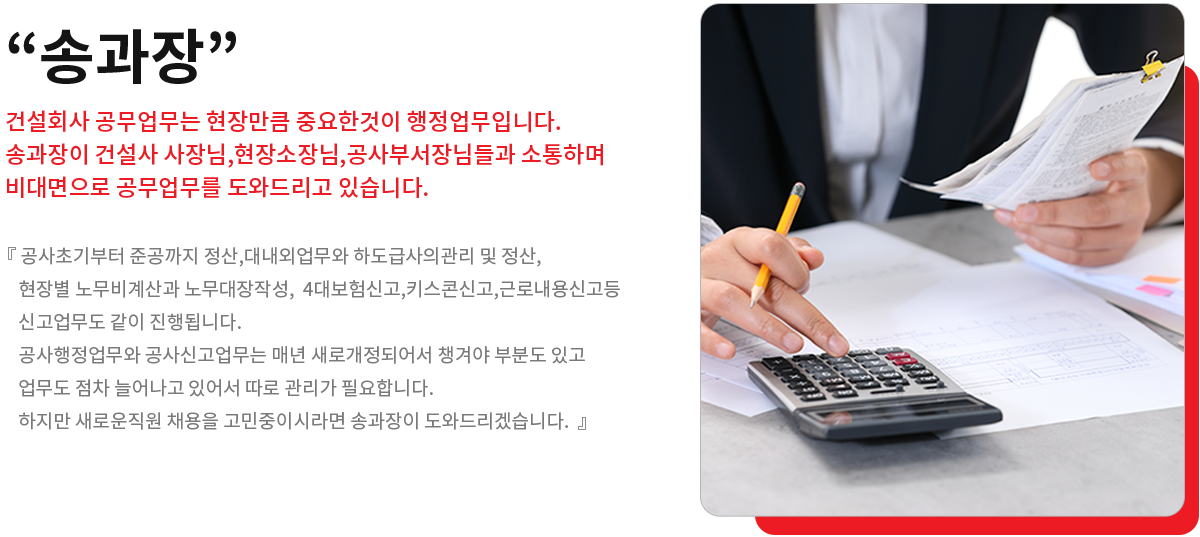 송과장 건설회사 전문 경리 및 신고업무대행